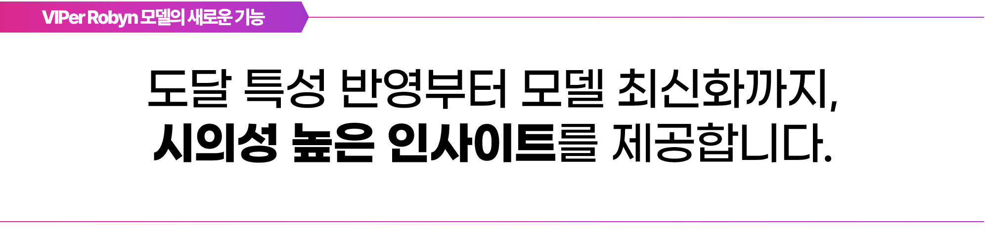 또한 VIPer 2.0은 Recency(최신성) 흐름을 반영하지 못하는 상황을 방지하기 위해 ‘모델 리프레쉬(Model Refresh)’ 기능을 지원합니다. 이 기능을 통해 데이터가 갱신될 때마다 모델을 다시 세팅해야 했던 번거로움을 줄이고, 한 번 구축한 모델 구조를 유지한 채 최신 데이터만 간편하게 업데이트할 수 있습니다. VIPer 2.0의 ‘모델 리프레쉬(Model Refresh)’ 기능을 활용해 분석의 일관성을 유지하면서 최신 캠페인이 반영된 시의성 높은 인사이트를 도출해보세요.