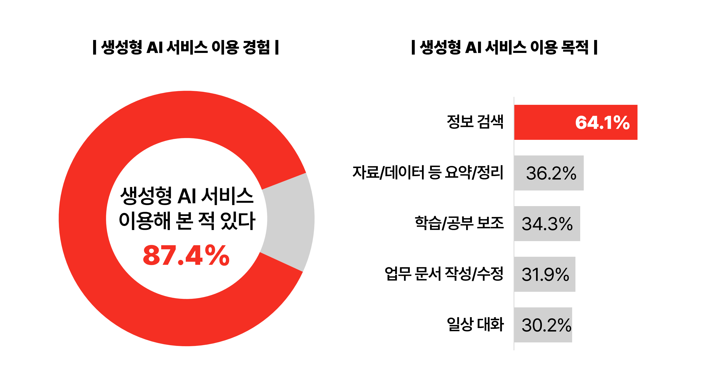 생성형 AI는 이제 단순한 흥미 위주의 도구를 넘어 '주요 정보 검색 채널'로 확실히 자리 잡았습니다. 인터넷 이용자의 87.4%가 생성형 AI 서비스를 경험했고, 그 중 64.1%가 정보 검색을 목적으로 활용하며 검색 시장의 판도를 바꾸고 있죠. 소비자의 정보 획득 방식이 '키워드'에서 '맥락' 위주로 재편되고 있는 만큼, 마케터는 이러한 새로운 검색 행태의 변화를 관찰하고 대비를 시작해야 할 시점입니다.