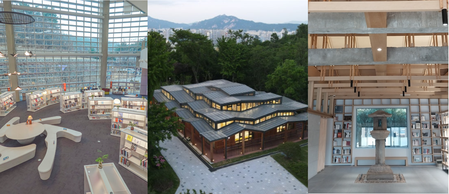 왼쪽부터 의정부 미술도서관, 오동숲속도서관, 경주 신라천년서고 |
