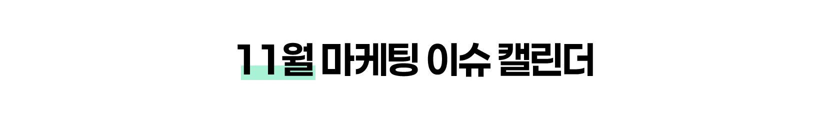 한 발 빠르게 받아보신 11월의 마케팅 이슈 레터는 어떠셨나요? 11월의 주요 일정과 자세한 마케팅 이슈가 궁금하시다면 아래 버튼을 통해 확인해 주세요. |