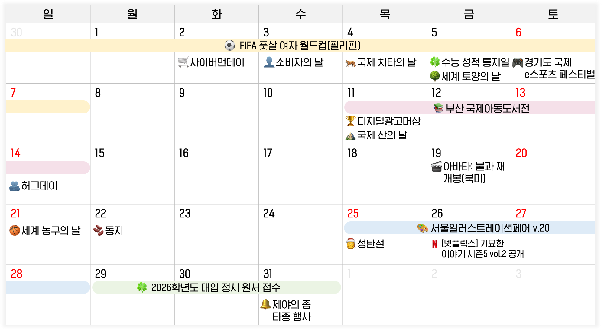 ✅ 크리스마스(12.25) : 크리스마스는 목요일! 금요일 연차 사용 추천해요. |
