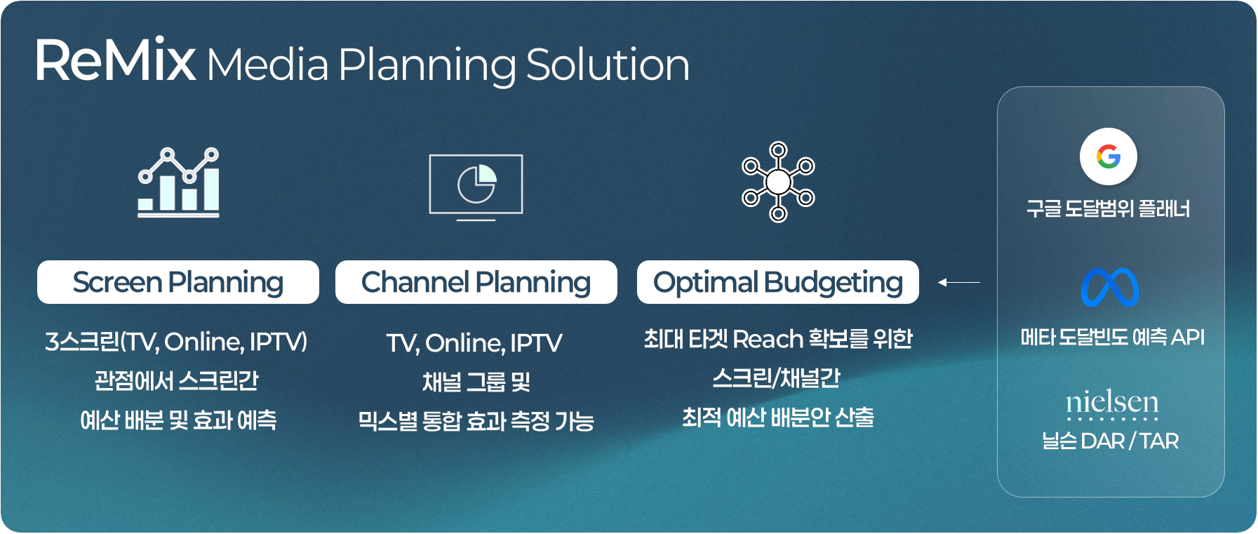 최적의 미디어믹스를 제안하여 타겟 도달 효과를 극대화하는 통합 노출·도달 효과 분석 도구 ReMix는 2015년 출시 이후 현재까지