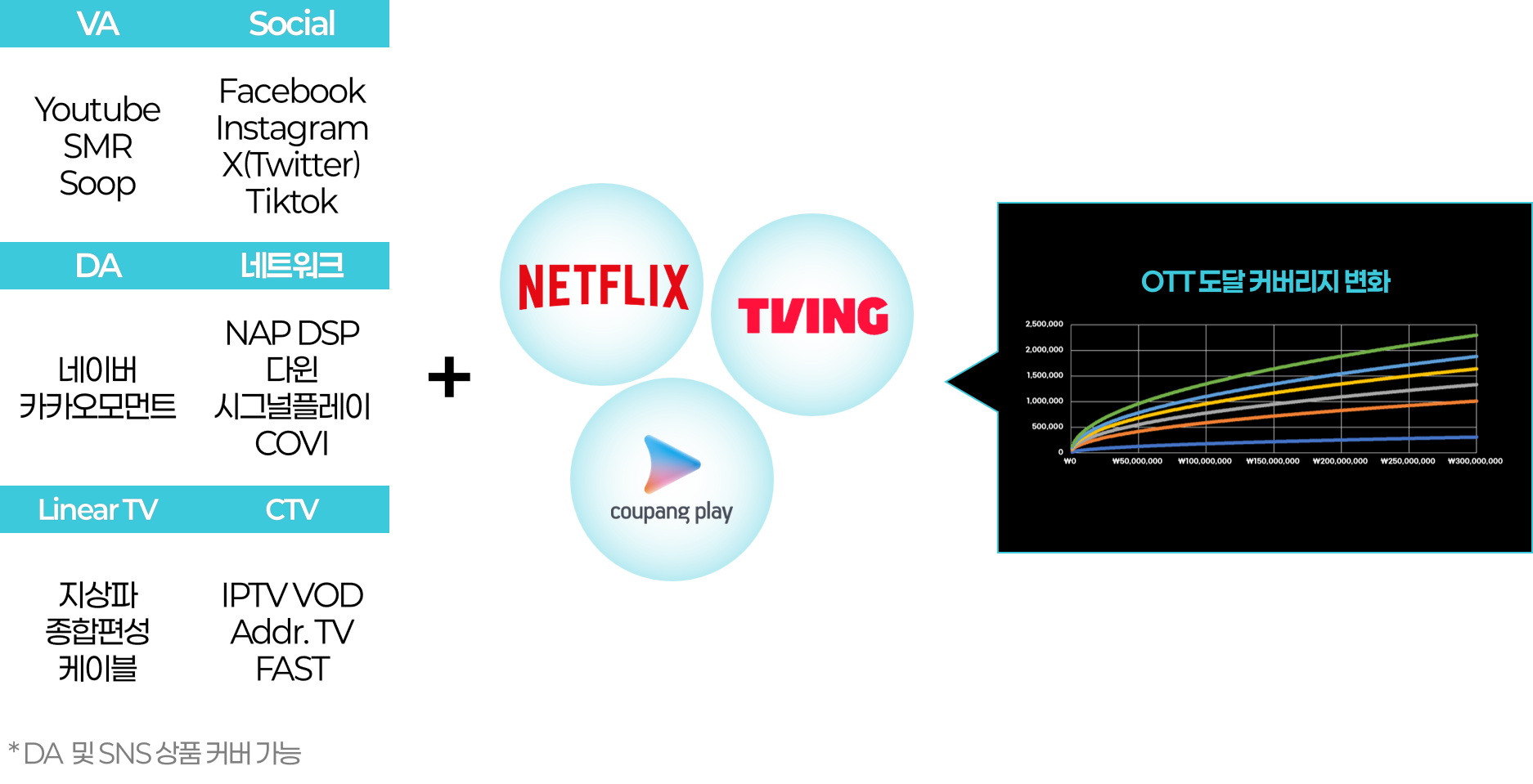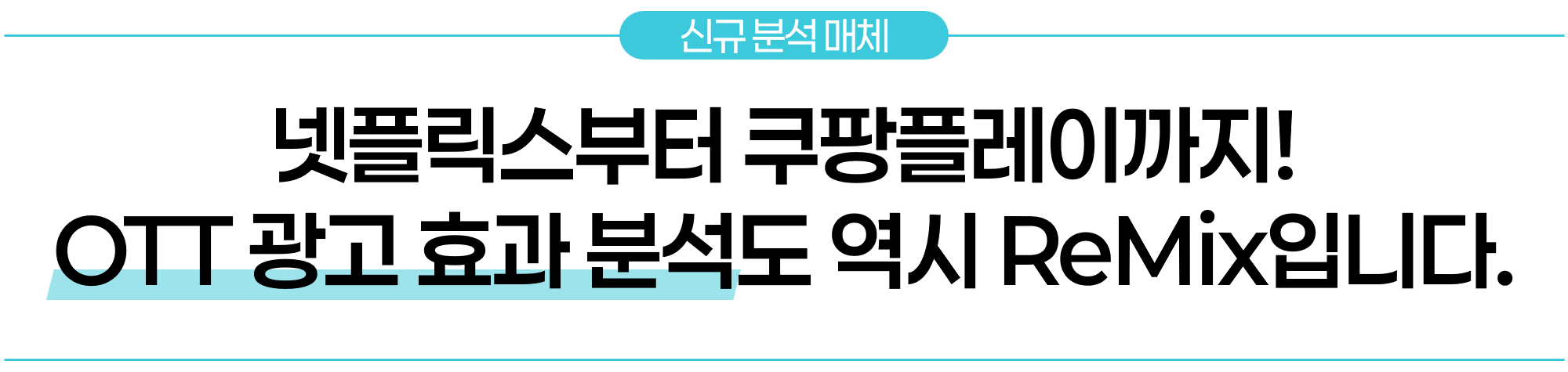 ReMix는 이러한 미디어 환경 변화에 발 빠르게 대응하여 넷플릭스, 티빙, 쿠팡플레이의 실제 캠페인 집행 데이터 기반으로 도달 효과를 분석합니다. 향후 광고 요금제 출시가 예상되는 다른 OTT 서비스에 대한 연구도 지속 중입니다.