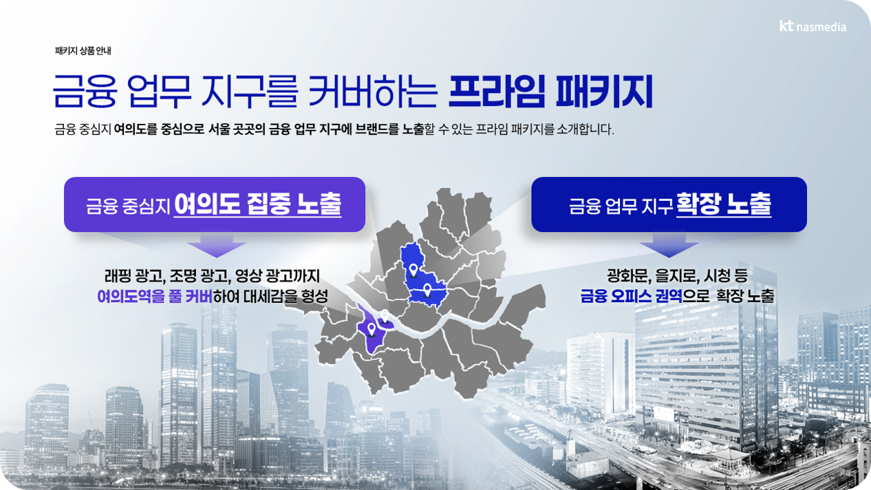 금융의 중심지, 여의도를 메인으로 서울 곳곳의 금융 업무 지구에 브랜드를 노출해보세요.