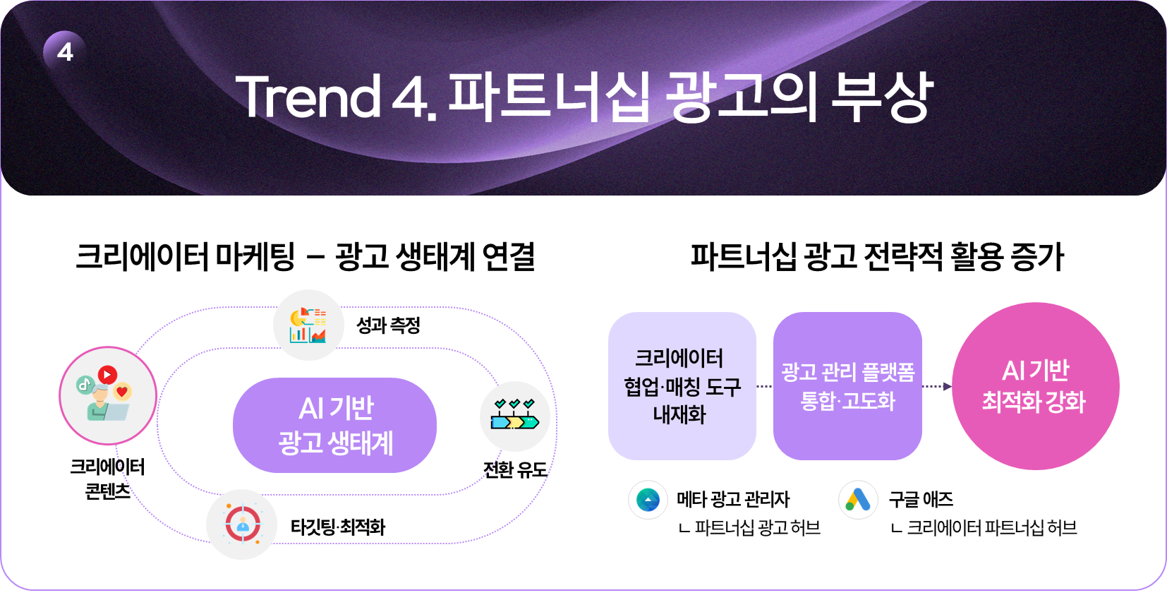 크리에이터 마케팅은 지속적인 성장과 함께 AI 광고 생태계에 연결되고 있습니다. 특히 크리에이터의 콘텐츠를 공식 광고 소재로 활용하는 ‘파트너십 광고’가 빠르게 부상하고 있는데요.