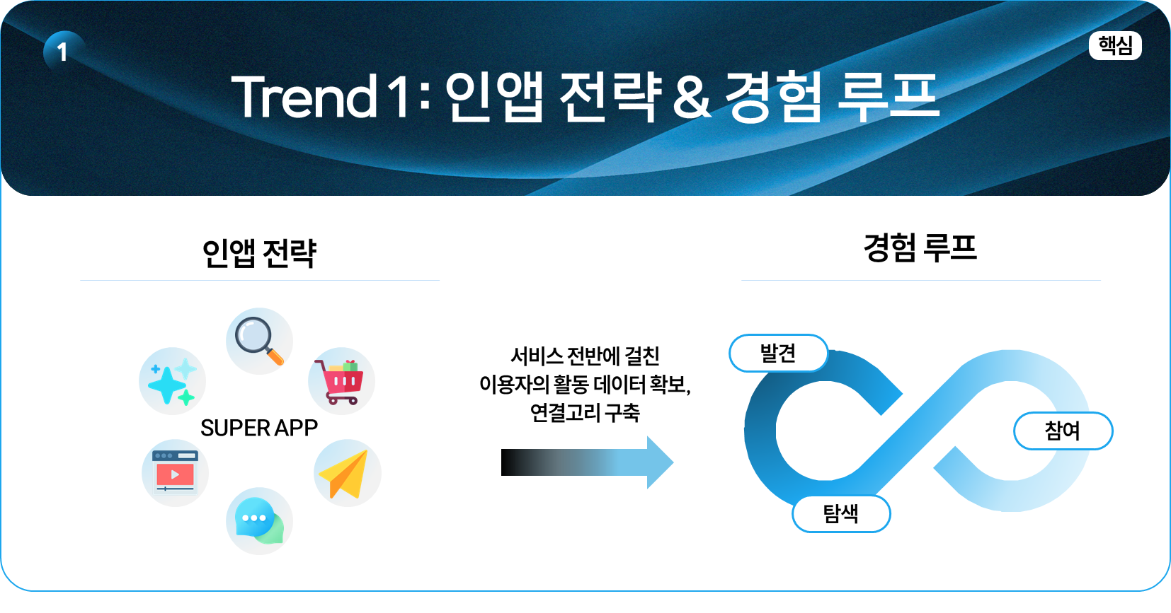 2026년은 디지털 탐색 방식과 이용자 행태가 다시 정의되는 전환점으로 전망됩니다. 플랫폼은 서비스 간 이동을 최소화하고 앱 안에서 발견–탐색–참여–전환이 순환되는 구조를 강화하며 ‘인앱 전략 & 경험 루프’를 핵심 경쟁력으로 삼고 있습니다.